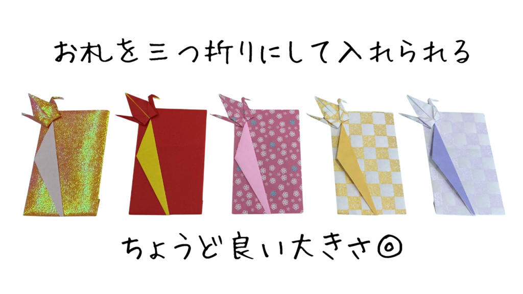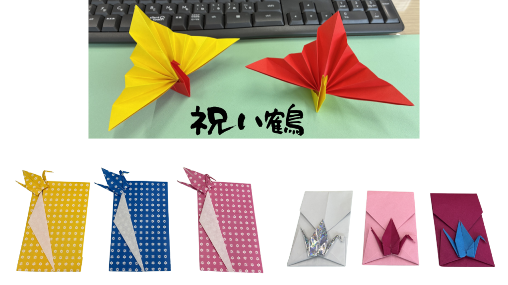 15㎝×15㎝の折り紙で【祝い鶴】と【ポチ袋】を作ってみました!