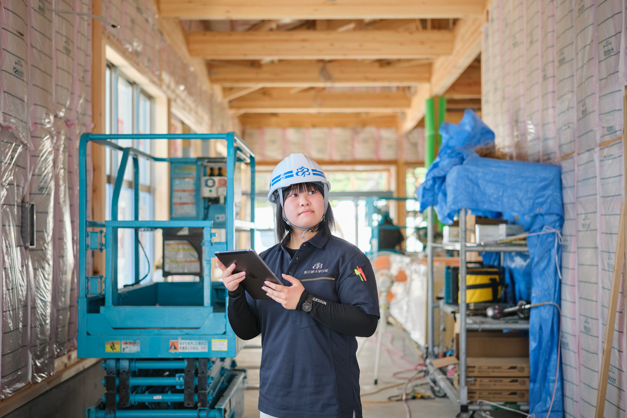 中学生の時の職場体験がきっかけで高校でも建築を学び、専門学校に進学しました。 女性の技術者も多く現場で活躍していたので、自分も地域貢献したいと思い入社しました。